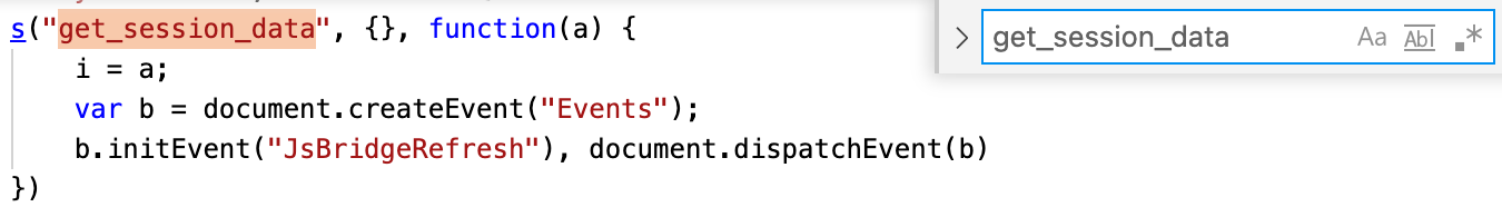 In this case, I was able to extract some very valuable information from resources > assets > js > jsBridge-mix.js which contained a lot of code involving native webview to Java interaction. You can find the JS here, to see what I was dealing with. After understanding the code, I figured out a lot of function calls and what their purpose is. Looking for the get_session_data() from above also showed how a call looks like: